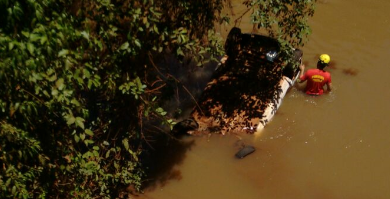 Bombeiros Militares de Itumbiara atuam em ocorrência de veículo submerso em ribeirão