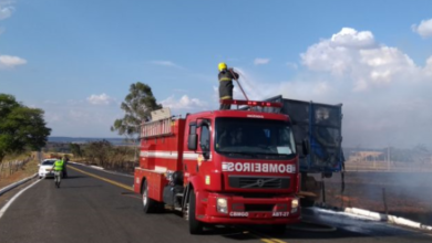 Bombeiros Militares de Catalão atuam em ocorrência de incêndio em caminhão na GO-330
