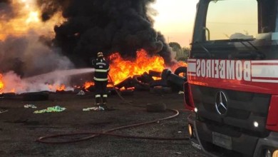 Bombeiros combatem incêndio em depósito de pneus em Águas Lindas de Goiás