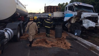 Bombeiros Militares de Morrinhos atuam em acidente envolvendo dois caminhões