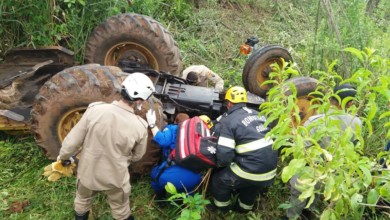 Corpo de Bombeiros atende ocorrência de vítima presa em trator após tombamento
