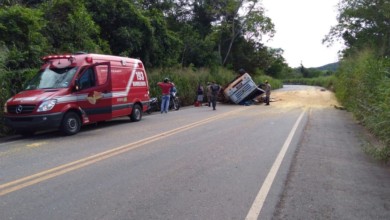 Bombeiros militares socorrem vítima de acidente com caminhão de soja na Cidade de Goiás