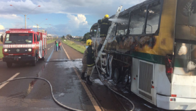 Bombeiros de Itumbiara atuam em ocorrência de incêndio em ônibus na BR-153