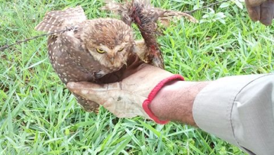 Bombeiros Militares de Jataí resgatam coruja machucada em cerca de arame farpado