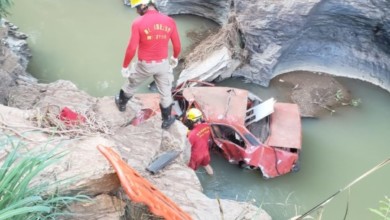 Bombeiros de Águas Lindas de Goiás resgatam corpo de vítima de veículo que caiu da ponte do Ribeirão dos Bois