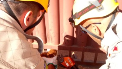 Bombeiros Militares em Goianira realiza salvamento de um cachorro preso na grade do portão