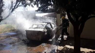 Bombeiros Militares em Caldas Novas realizam combate a incêndio em veículo