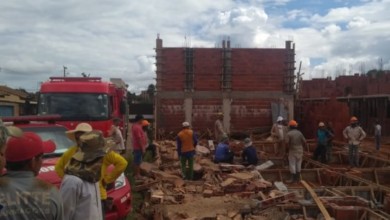 Corpo de Bombeiros Militar em Águas Lindas de Goiás socorre vítimas de desabamento em uma construção