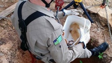 Bombeiros do 8º BBM resgataram ontem um cachorro que caiu em uma cisterna no Residencial Ville De France, em Goiânia.…