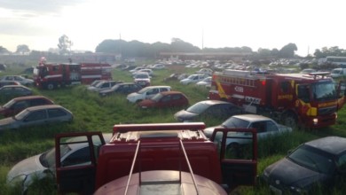 Corpo de Bombeiros Militar realiza combate a incêndio em veículos no pátio do DETRAN de Goianira