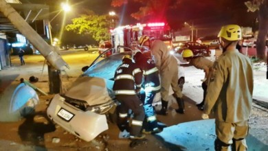 Corpo de Bombeiros Militar socorre vítima de acidente em uma colisão entre carro e poste em Goiânia
