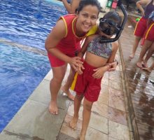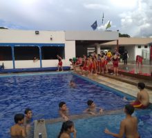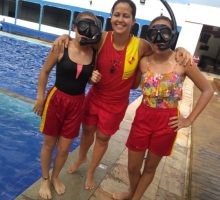 Na oportunidade, as crianças tiveram noção de mergulho com máscara e snorkel, muita diversão com a competição de captura de bolinhas na piscina, recreação com cabo de força e futebol.