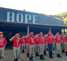 Bombeiros Mirins do 16º BBM, visitaram na ultima sexta-feira (14) o quartel do BOPE (Batalhão de Operações Especiais) da Policia Militar do Estado de Goiás.