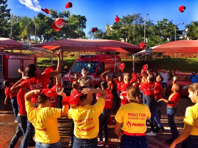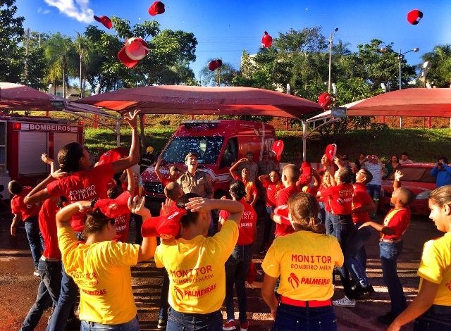 A sexta Turma de Bombeiros Mirins de Palmeiras de Goiás marcou o encerramento das atividades do ano letivo com uma Solenidade de extrema importância: O Batizado. Ato que consagra e efetiva a Turma de Bombeiros Mirins junto a Unidade Operacional, e ainda, momento em que as crianças fazem uma apresentação técnica aos Familiares de atividades inerentes ao Programa que aprenderam e evoluíram.