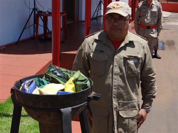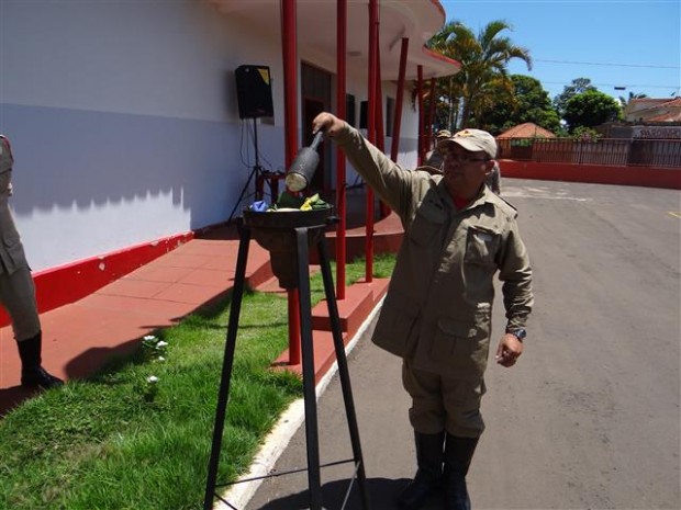 Nesta terça-feira, 19, os Bombeiros de Jataí realizaram Formatura Geral, ao meio-dia, em homenagem ao Dia Nacional da Bandeira. O ato cívico contou contou com presença do efetivo do quartel e da imprensa local. Durante a cerimônia, foi realizado o rito de incineração de bandeira inservível. A solenidade aconteceu sob orientação de lei que trata especificamente da bandeira nacional. Ela indica que as bandeiras devem ser hasteadas às 12 horas do dia 19 de novembro. Outra orientação da lei é que as bandeiras nacionais antigas ou não mais utilizadas sejam incineradas. Após a incineração a solenidade conta com canto do Hino à Bandeira e desfile dos militares em continência ao Pavilhão Nacional.