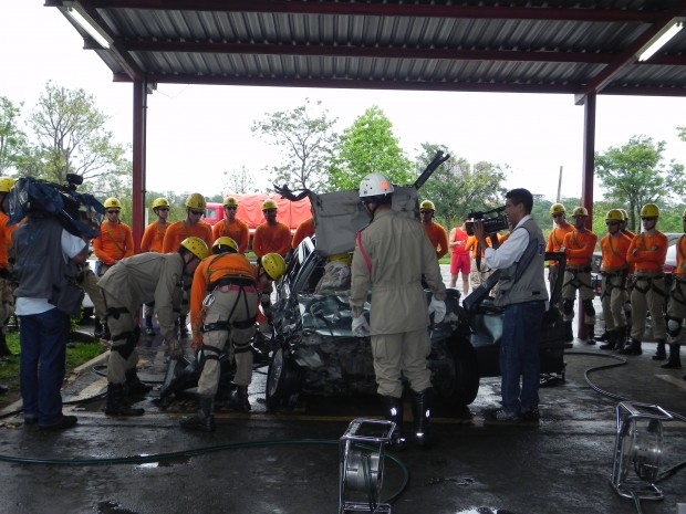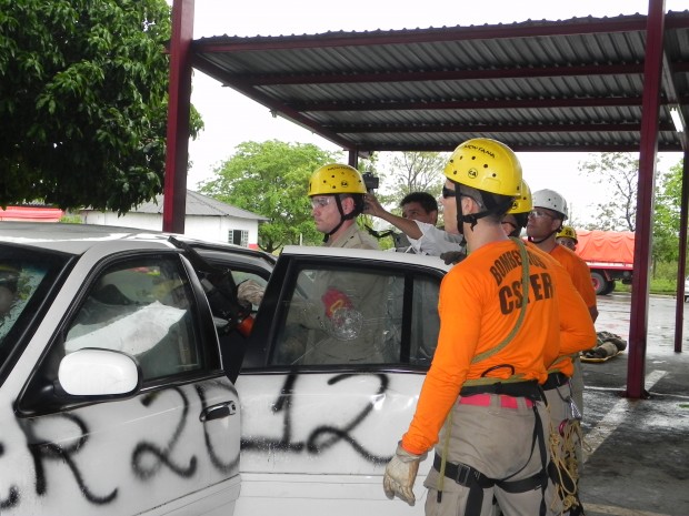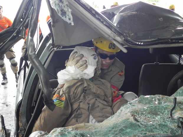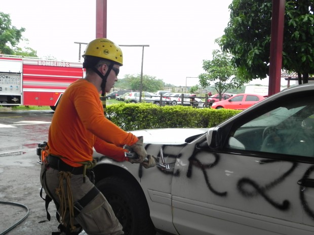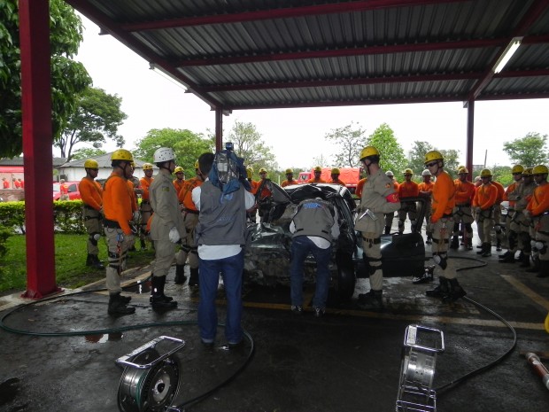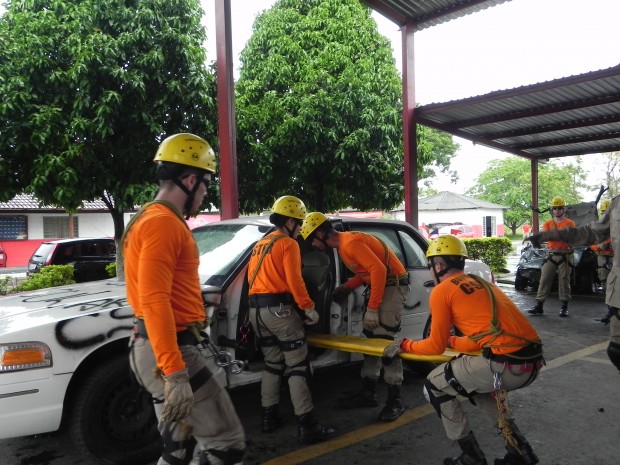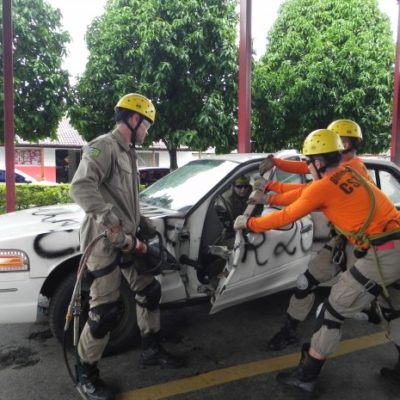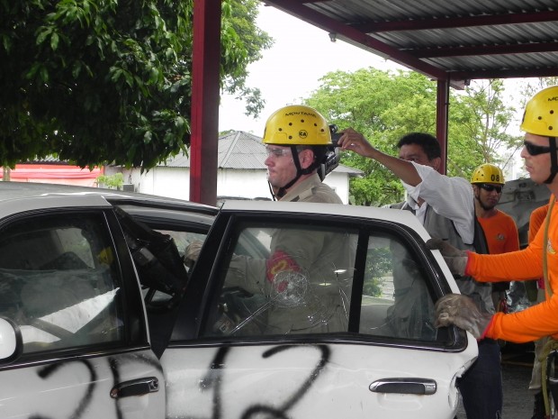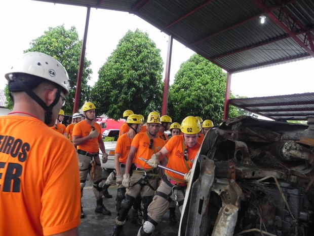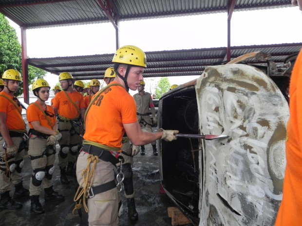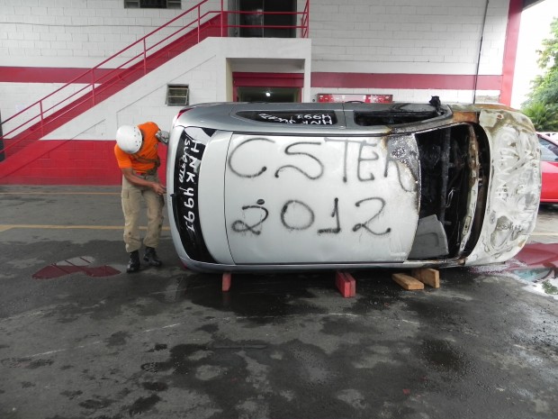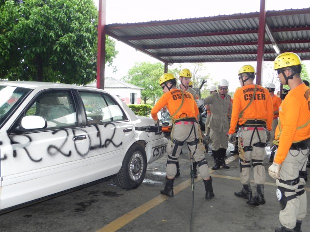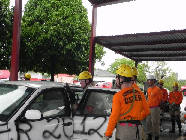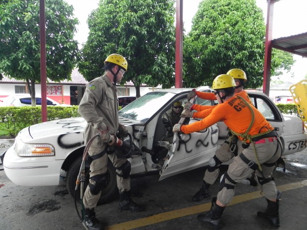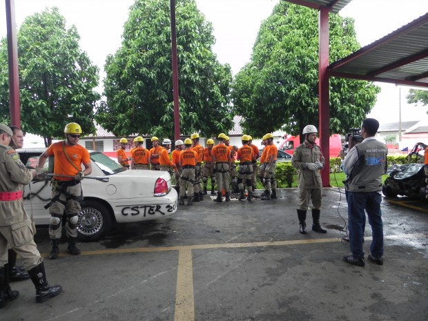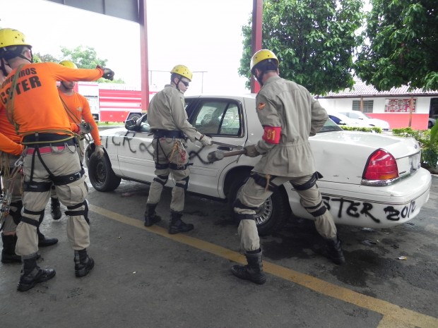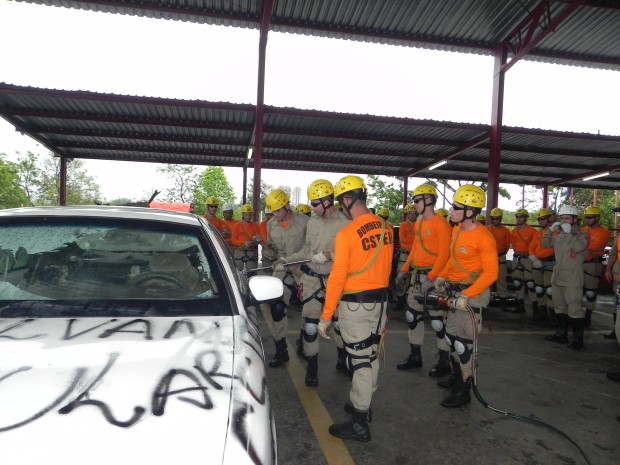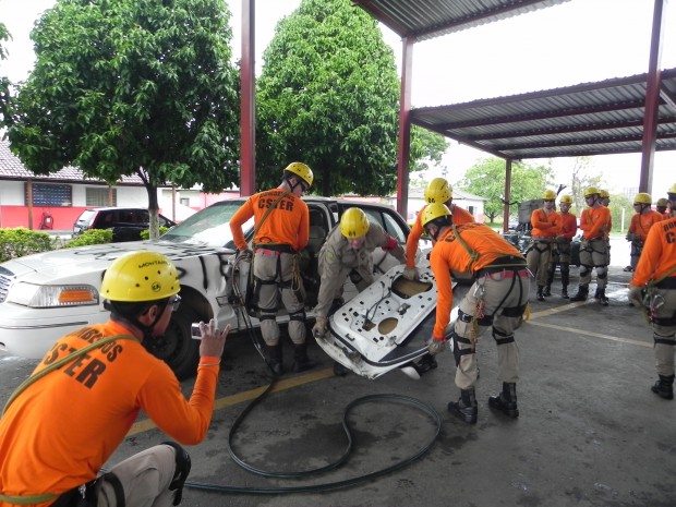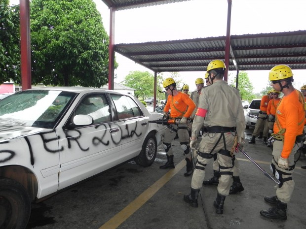 Nesta quinta-feira, dia 8, o Curso de Salvamento Terrestre – (CSTER/2012),  realizou um treinamento na Academia Bombeiro Militar de desencarceramento de  vítimas presa em ferragens. Foram utilizados cinco veículos, dos quais um  era blindado, doado pela Embaixada Americana para que os alunos aprendessem quais as técnicas necessárias para a remoção de vítimas neste tipo de veículo, cujo acesso não é possível ser feita pelos vidros do veículo, uma vez que estes são blindados, o treinamento chamou a atenção de emissoras de televisão, rádio e jornais. Confira fotos: