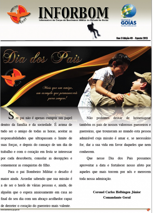 Confira a Edição Especial do Dia dos Pais do Inforbom (Informativo Interno do Corpo de Bombeiros Militar do Estado de Goiás).