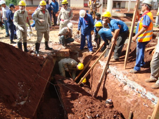 O serviço operacional do 10º Batalhão Bombeiro Militar, em Catalão, atenderam, no último dia 15, uma ocorrência de soterramento em uma montadora de veículos instalada no Distrito Minero Industrial de Catalão. O acidente, aconteceu durante as obras de escavação de uma rede de esgoto, onde dois funcionários, que estavam dentro de uma vala foram surpreendidos com o desmoronamento de um bloco de concreto, ficando ambos soterrados, até a cabeça. A equipe do Corpo de Bombeiros e funcionários da empresa, realizaram o trabalho de remoção dos escombros, sendo necessário a utilização de um guincho para eliminar as condições de insegurança e minimizar os riscos de novos acidentes.