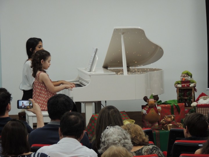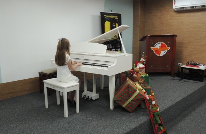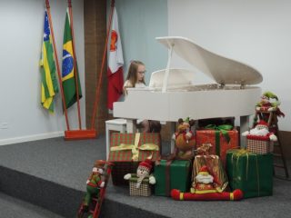 O auditório do Comando Geral do Corpo de Bombeiros Militar do Estado de Goiás (CBMGO) recebeu na noite de segunda-feira, 2, o Recital de Piano Beneficente. A apresentou contou com a apresentação das turmas de Piano das Professoras Vanessa Melo e Dalila Kaismer. Os alunos puderam mostrar para a plateia o que aprenderam ao longo do ano. Além de cultural, a ação foi uma forma para arrecadar alimentos para a campanha Natal Seguro organizada pela Secretaria de Segurança Pública (SSP) e a Organização das Voluntárias de Goiás (OVG). Todos alimentos arrecadados serão distribuídos para famílias cadastradas.
