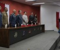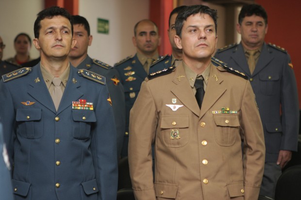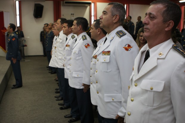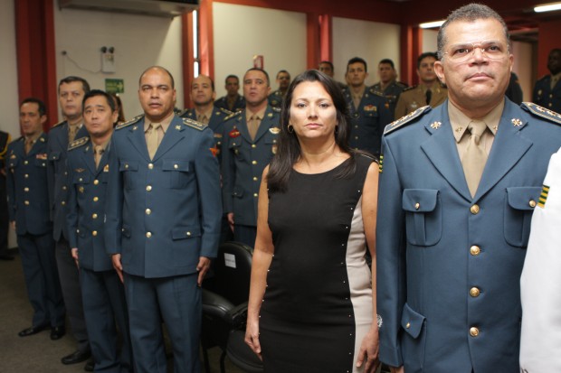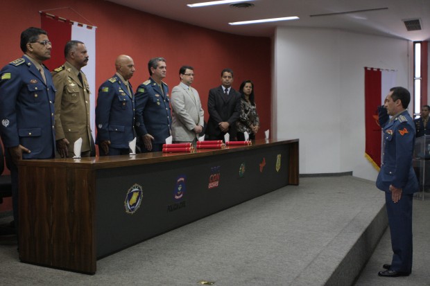 Compuseram a mesa da Solenidade, o Comandante Geral do CBMGO, Coronel Carlos Helbingen Júnior, o Subcomandante Geral do CBMGO, Coronel Divino Aparecido de Melo, o Subcomandante da Polícia Militar, Coronel Jurai Alves de Sousa, o Comandante de Comando de Ensino, Coronel Leônidas Eduardo Dias, a Superintendente de Polícia Técnico-Cientifica, Rejane da Silva Barcelos, e o Chefe de Gabinete da SSP, Dr. Rogério Santana Ferreira.