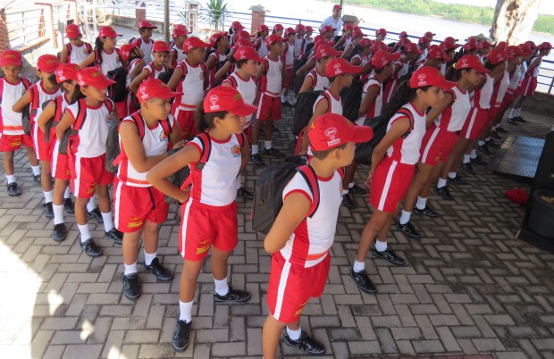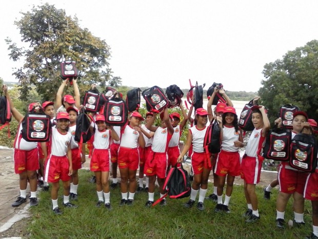O uniforme, que é composto de camiseta, short, tênis e boné, além de uma mochila, foi distribuído a todas as crianças que participam do curso em Arunã, Araguarças, Britânia, Cocalinho, Luiz Alves e Bandeirantes. O kit contém, ainda, materiais de higiene bucal (escova, fio dental e pasta de dente) além de um filtro solar com repelente e uma garrafinha de água. Confira fotos da entrega: