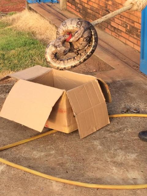 A 13ª Companhia Independente Bombeiro Militar em Goianésia foi acionada para a captura de uma jibóia que se encontrava em um hangar, localizado no Aeroporto do município. Após a captura, o animal foi encaminhado à Secretaria Municipal do Meio Ambiente.