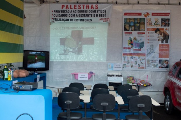 As palestras abordam temas como prevenção de acidentes domésticos, cuidados especiais com gestantes e bebês, segurança com botijão de gás e ainda oficina de utilização de extintores. Foi montada uma salda de aula no stand onde os visitantes assistem vídeos e recebem as orientações. Confira fotos: