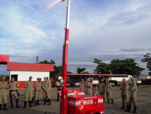 A unidade do Corpo de Bombeiros Militar em Luziânia, 5º Batalhão Bombeiro Militar, recebeu o reboque de iluminação adquirido pelo Governo do Estado de Goiás através de recursos provenientes do FUNEBOM. Trata-se de um veículo reboque constituído de moto gerador de energia e potente torre de iluminação para ser empregado em ocorrências noturnas ou ambientes desprovidos de iluminação. Na manhã de hoje 14, durante a passagem de serviço, o efetivo Operacional, Administrativo e o Corpo de Alunos da unidade receberam instrução prática de como operar o RI-02. Confira fotos: