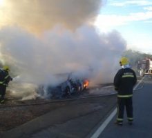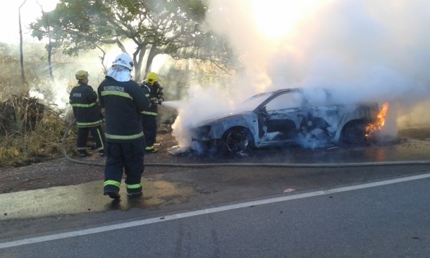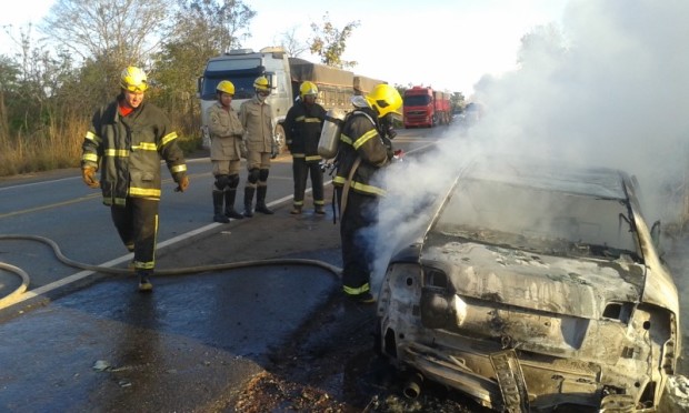 No local as Equipes do Corpo de Bombeiros Militar combateram o incêndio no veículo e verificaram que este estava atingindo a vegetação às margens da Rodovia. O condutor, não sofreu ferimentos . Confira fotos: