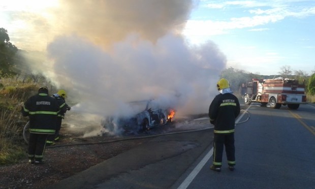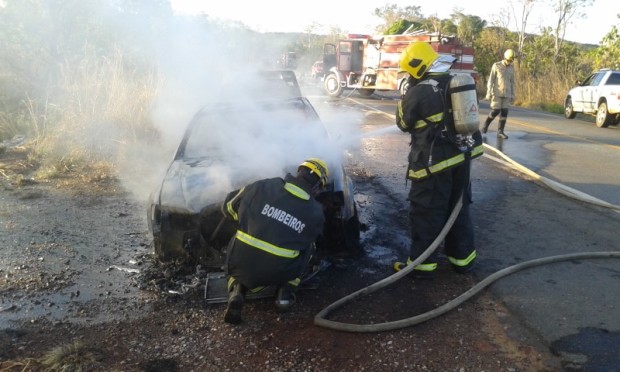 Corpo de Bombeiros Militar combate incêndio em veículo na GO 080