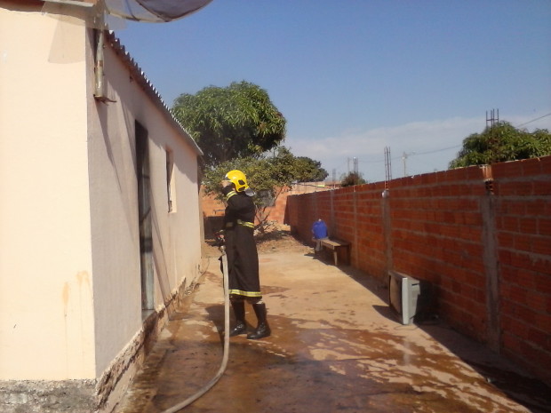 O 2º PBM, em Cristalina, atendeu nesta última quinta-feira, 09, uma ocorrência de incêndio em residência. O ABTS-01, composto pelo Sgt Da Silva e Cb Rafael, e URS-10, Soldados Luis Antônio e Wanderson extinguiram o incêndio, que se concentrava em um quarto da casa, evitando que fossem atingidos os demais cômodos.