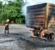 Bombeiros Militares de Jaraguá combatem incêndio em caminhão na BR 153
