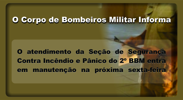 Atendimento da Seção de Segurança Contra Incêndio e Pânico do 2º BBM entra em manutenção na próxima sexta-feira