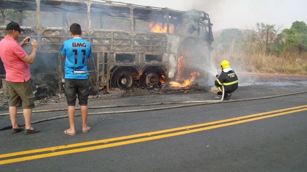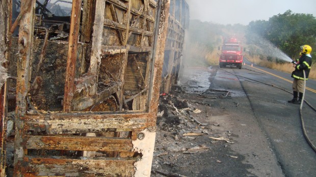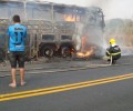 O Corpo de Bombeiros combateu em Iporá na tarde de domingo, dia 16, um incêndio em ônibus. O veículo que retornava de Goiânia para Sinop (MT) começou a se incendiar na GO-060, cerca de 20 km depois de Iporá, no KM 240. O ônibus com cerca de trinta passageiros estava carregado com roupas e acessórios adquiridos na Feira Hippie em Goiânia para ser comercializados em Sinop e região. Ao chegar no local, o Corpo de Bombeiros encontrou o veículo totalmente em chamas devido a grande quantidade de material combustível, o que causou perda total ao ônibus. Ninguém se feriu. Confira as fotos: