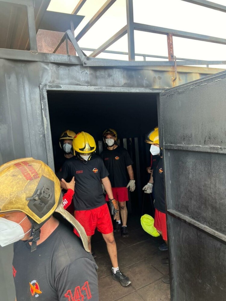 Os participantes receberam instruções nos simuladores táticos de incêndio das fases 4 e 5, bem como no simulador de observação da fase 3. Nestes ambientes simulados, enfrentaram cenários que incluíam progressão em ambientes confinados, busca e resgate de vítimas, e combate ao incêndio. Esta experiência prática permitiu-lhes aprimorar suas habilidades técnicas e familiarizar-se com o equipamento de proteção respiratória autônomo (EPRA) e suas câmeras térmicas.