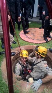 Na semana passada, o 8º Batalhão Bombeiro Militar, em Goiânia, recebeu uma visita técnica dos alunos do Curso de Formação de Oficiais (CFO-1) do CBMGO. Durante a visita, foi realizada uma apresentação sobre a história do quartel e, posteriormente, algumas simulações na área de salvamento em altura, terrestre e combate a incêndio. Foi demonstrado ainda o sistema multiplicador de força, descidas de rapel com uso de ID (Industrial Descensor), técnica de resgate de vítima em cabo paralelo, entre outros. Além disso, houve apresentação das novas instalações da Seção de Segurança Contra Incêndio e Pânico (SECIP) da unidade acompanhada de noções de vistoria nas instalações da torre.