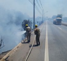 A equipe do ABT-26, da Academia Bombeiro Militar, em Goiânia, foi acionada no domingo, 5, para combater incêndio em vegetação às margens da Avenida Perimetral, ao lado da Estação de Tratamento de Esgotos. Para a extinção do incêndio, os Bombeiros Militares utilizaram equipamentos como abafadores e bomba costal, além de 5 mil litros de água. Confira fotos: