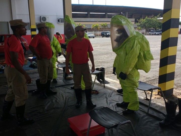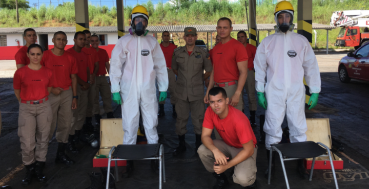 O treinamento, aconteceu de 19 de março a 05 de abril de 2018. Os alunos aprenderam a utilizar os Equipamentos de Proteção Respiratória Autônoma, com equipagem de roupas de proteção Nível A, B e C, os protocolos utilizados no atendimento a Produtos Perigosos e as formas de descontaminação. No final da capacitação, os alunos realizaram um simulado de atendimento a produtos perigosos. As instruções foram ministradas pelos seguinte militares, Capitão Valério, Tenente Valdilck e Cabo Aistein. Confira fotos:
