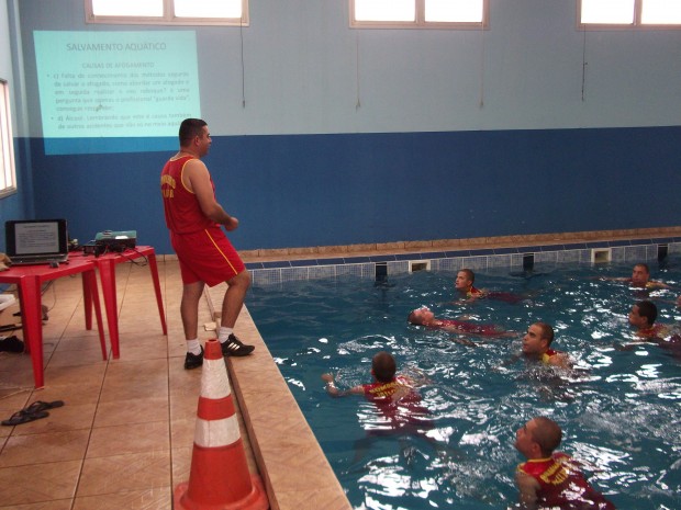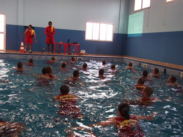 Alunos do Curso de Formação de Soldados, Pelotão Alpha, do 4º Batalhão Bombeiro Militar,em Rio Verde, participaram nesta terça-feira, dia 13, de Instrução de Salvamento Aquático, no Centro de Treinamento Aquático do 4º BBM.