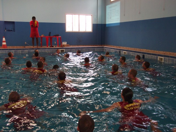 Os alunos, encontram-se na terceira semana de curso e estão realizando adaptação ao meio liquido. A instrução foi ministrada pelo Subtenente César. Confira fotos: