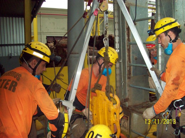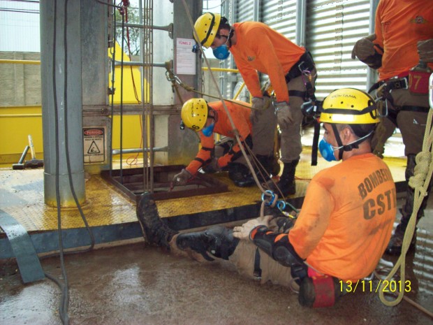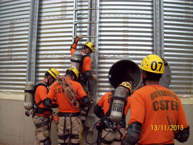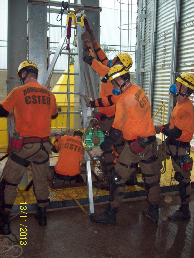 Na última sexta-feira, 15, alunos do Curso de Salvamento Terrestre (CSTER/2013) encerraram a 7ª Semana de Curso. Dentre as diversas atividades da semana, os alunos participaram de instruções de Salvamento em Espaço Confinado. O treinamento aconteceu nas instalações de uma indústria de armazenamento de grãos na cidade de Anápolis. Os alunos realizaram monitoramento de espaço confinado com uso de detectores de gases, resgate de vítimas engolfadas por grãos e resgate de vítimas em ambientes confinados com uso de táticas e técnicas de multiplicadores de força e transposição, específicas para essas situações. Confira fotos: