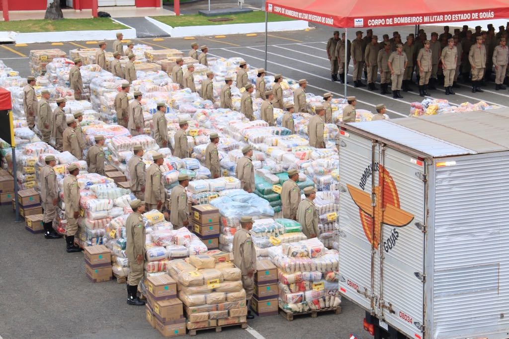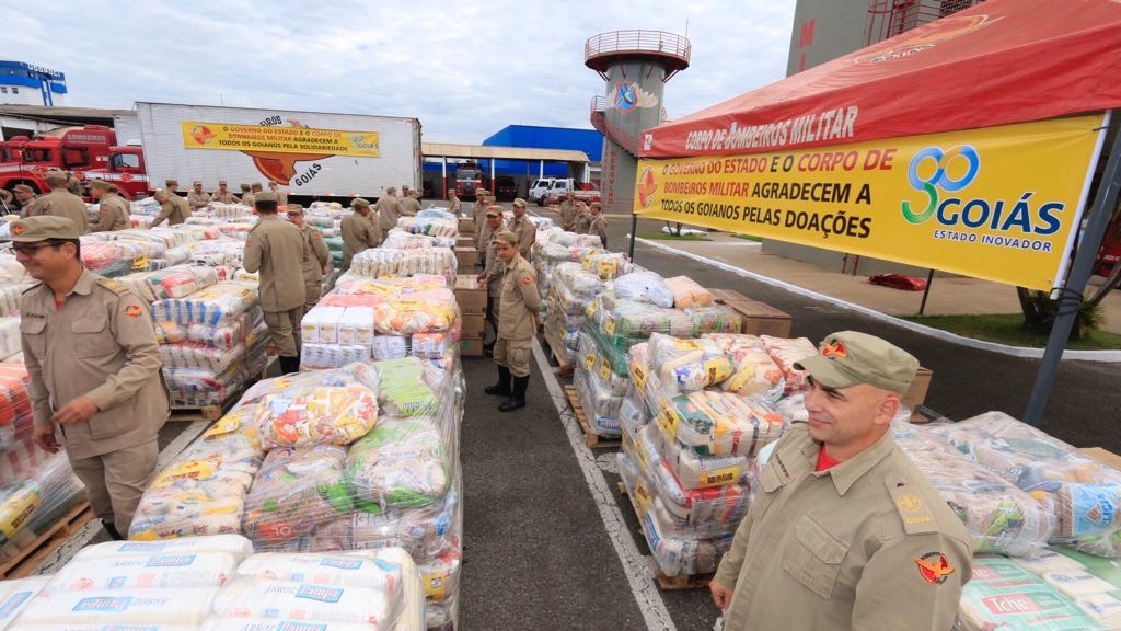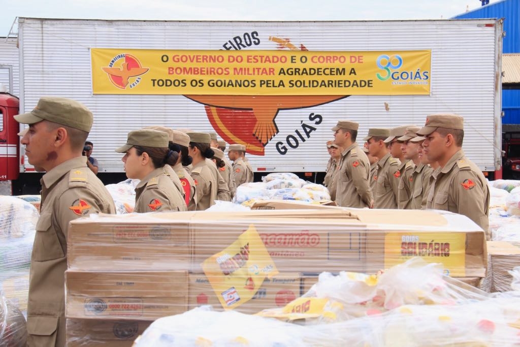 O povo goiano mais uma vez demonstrou solidariedade e atendeu o chamado do Corpo de Bombeiros Militar do Estado de Goiás (CBMGO), que, a pedido do governo do Estado, nas últimas semanas promoveu a campanha Goiás Solidário. A ação arrecadou mais de 130 mil quilos de alimentos para as vítimas das chuvas em Pernambuco e Alagoas. A meta inicialmente estabelecida era de 50 mil quilos. O embarque dos alimentos para o Nordeste foi realizado na manhã desta segunda-feira, em solenidade, no 1º Batalhão Bombeiro Militar, em Goiânia.