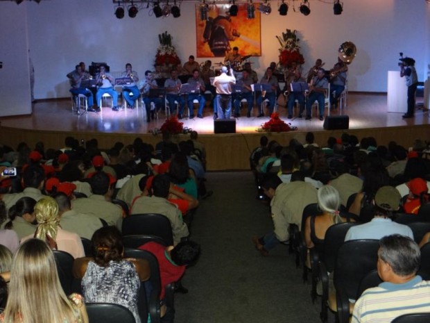 Em comemoração aos 20 anos de instalação da 3ª CIBM em Jataí, a Banda Sinfônica do CBMGO se apresentou na cidade na noite de quarta-feira, dia 2. O concerto foi no Centro de Cultura e Eventos e foi prestigiado por autoridades e comunidade local, pelo Comandante do 2º CRBM, Coronel Múcio Ferreira dos Santos, que já comandou a 3ª CIBM, além dos militares que fazem parte do quartel. Confira fotos: