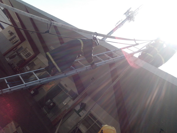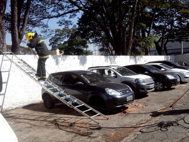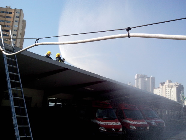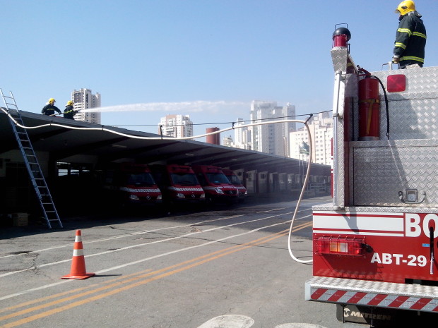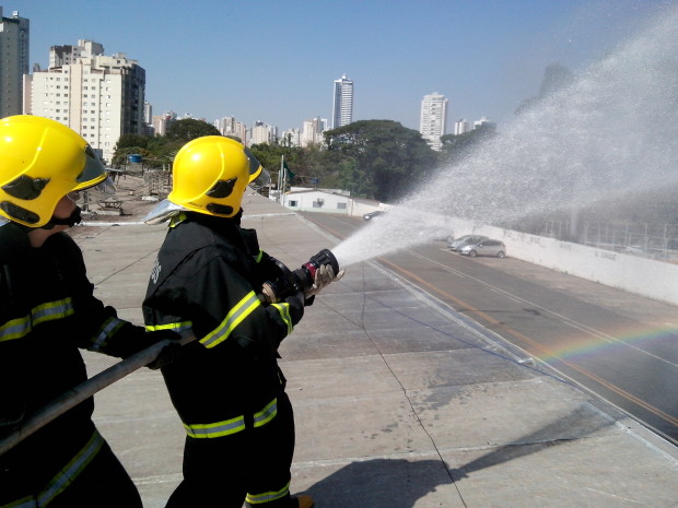 O Batalhão de Salvamento em Emergência (BSE) promoveu na quarta-feira, dia 6, uma instrução de combate a incêndio ministrada pelo 2º Tenente Rocha. A equipe do ABT-29 participou do treinamento que simulou uma situação de combate “aéreo”. Utilizando a estrutura do BSE foi simulado um tipo de ocorrência na qual não seria possível a montagem de uma linha em que a mangueira ficasse no solo. Seria necessário que ela permanecesse suspensa sobre o caminhão até o nível mais elevado onde a guarnição de combate a incêndio estaria. Uma vantagem da técnica é que não seria preciso, por exemplo, impedir o trânsito. Os militares também treinaram a técnica utilizada para içamento de mangueiras para combate a incêndio em edificações verticais. Confira fotos do treinamento: