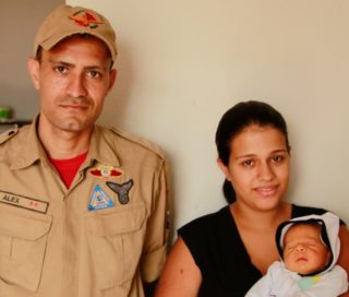 Bombeiro de Inhumas conhece bebê recém-nascido que ajudou a salvar por telefone