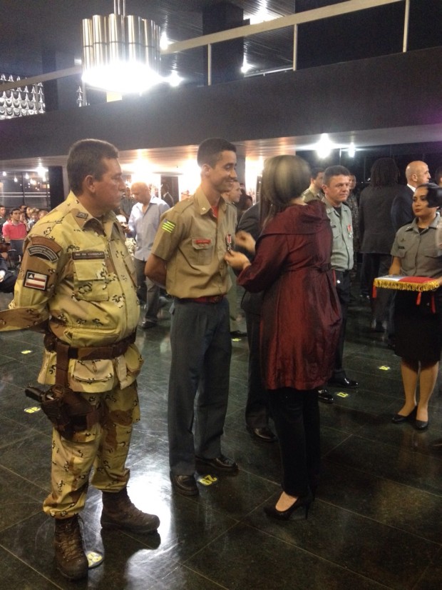 O Cabo Thompson, do 11º Batalhão Bombeiro Militar, em Porangatu, foi agraciado no sábado, 29, com a medalha “Mérito da Força Nacional – Soldado Luis Pedro de Souza Gomes”. A entrega da condecoração foi no Salão Negro do Ministério da Justiça em Brasília – DF, data em que se comemora o aniversário da Força Nacional de Segurança Pública. A cerimônia contou com as presenças do Ministro da Justiça, José Eduardo Cardozo, da Secretária Nacional de Segurança Pública, Regina Miki, do Subcomandante Geral do CBMGO, Coronel Divino Aparecido de Melo, dentre outras autoridades civis e militares.