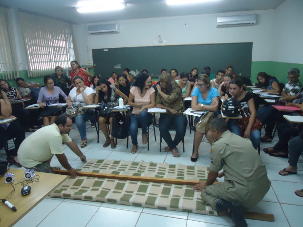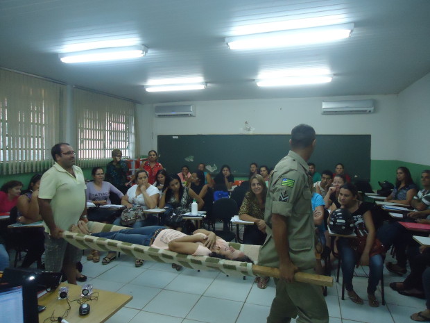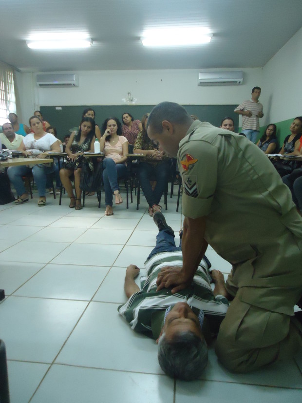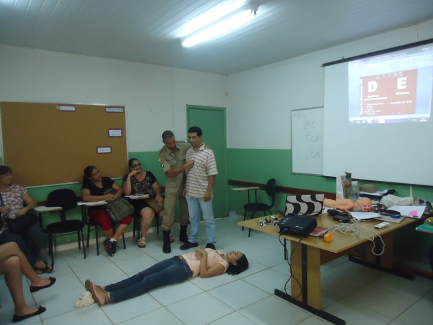 O 2° Sargento Roniskley, lotado no 2° Batalhão Bombeiro Militar, ministrou nos dias 16 e 23 de maio, palestra sobre primeiros socorros a funcionários do Centro Municipal de Apoio a Inclusão Brasil di Ramos Caiado. Foram abordados vários assuntos e situações do dia a dia dos participantes, inclusive improvisação de materiais de imobilização e transporte, como o colar cervical confeccionado com o papelão e prancha com cobertor. A atividade foi muito importante na visão dos funcionários por poderem tirar suas dúvidas sobre os procedimentos de primeiros socorros.