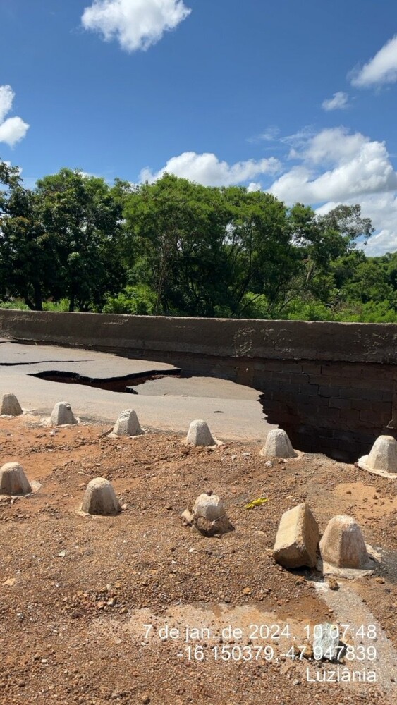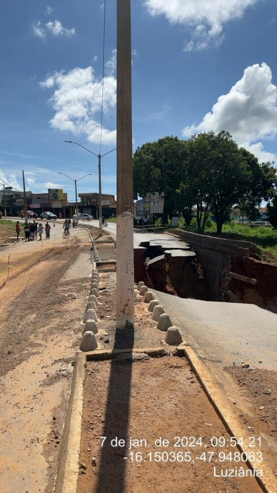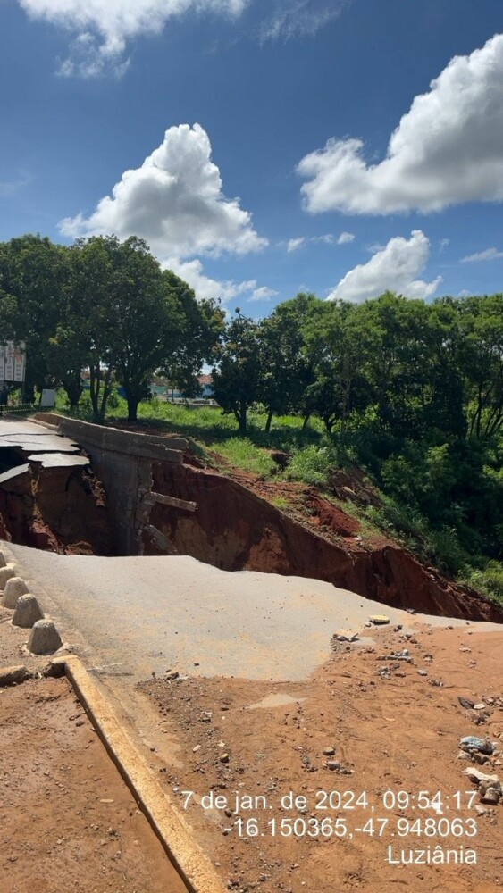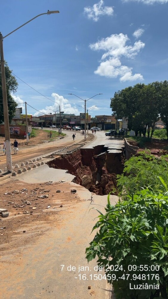Na manhã deste domingo, 7, o @cbmgo foi acionado para ocorrência de Defesa Civil no Distrito do Jardim Ingá, em Luziânia. Segundo levantamento, após as fortes chuvas da noite de sábado (06/01/2024), parte da via na avenida comercial do Jardim Ingá desmoronou, impedindo o tráfego de veículos no ponto afetado.
