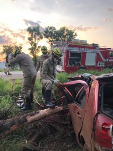 Ao chegarmos no local encontramos o motorista politraumatizado e preso às ferragens, uma equipe do SAMU que também apoiou na ação constatou óbito do jovem de 22 anos.