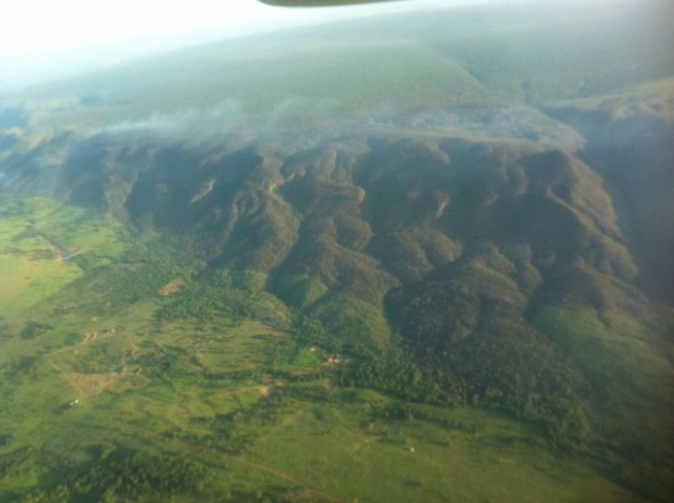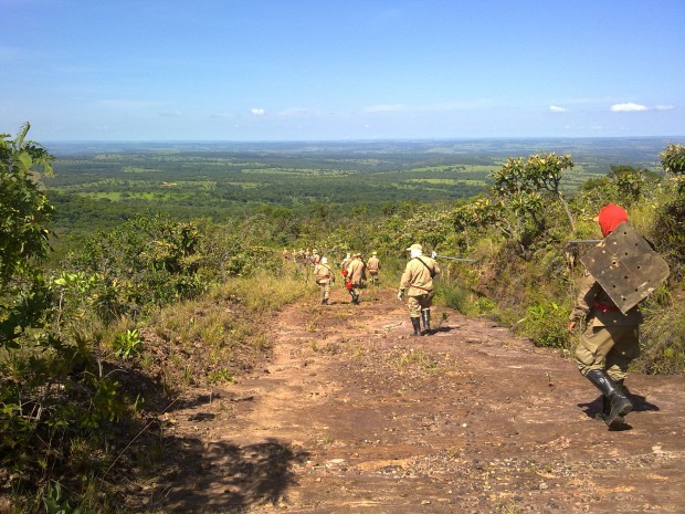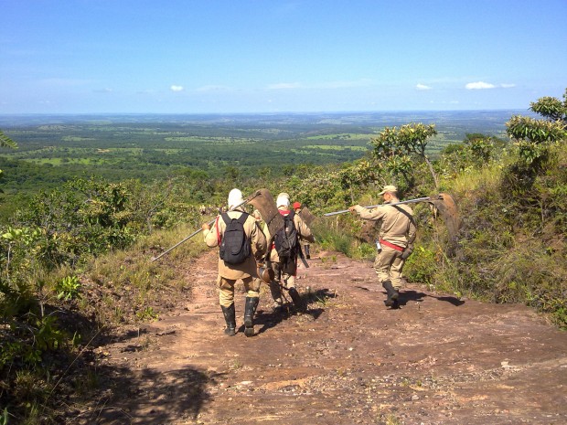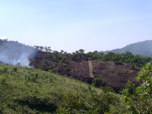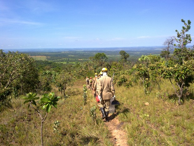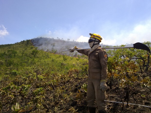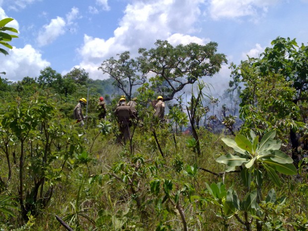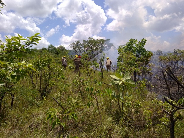 Bombeiros combatem incêndio no Parque Estadual da Serra de Caldas Novas